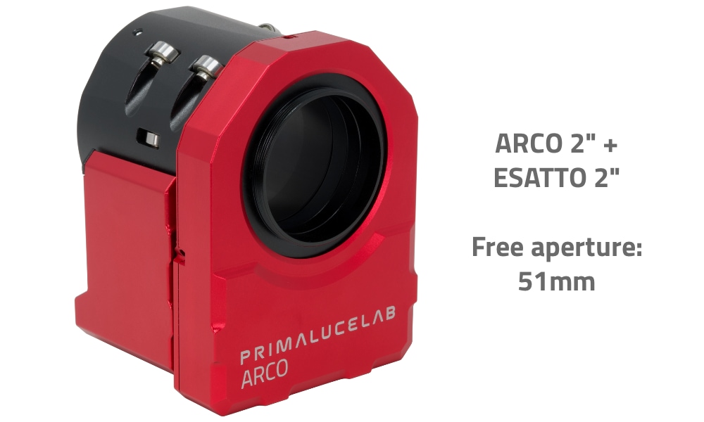 L'adattatore ESATTO 2" per ARCO 2" consente di collegare il rotore al focheggiatore micrometrico ESATTO 2" e controllarlo tramite ESATTO attraverso la speciale porta. Aggiungendo questo adattatore ad ARCO 2", lo spessore del rotatore è 21mm.