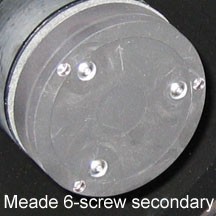 Adatto a: Versioni Meade 8" (20 cm) f/10 SCT con sei viti sull'alloggiamento secondario (LX90, LX200, LX200ACF, LX200R, LS-8 SC e ACF, LT-8 SC e ACF, altri). Le viti interne servono per la collimazione.