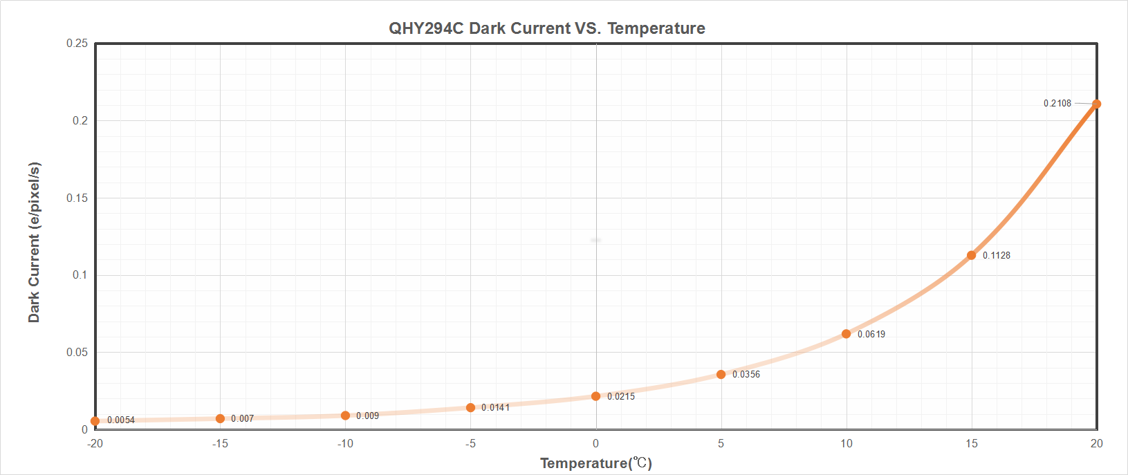 La QHY294C utilizza una tecnologia proprietaria di QHY che abbassa la corrente di buio. Questa tecnologia riduce significativamente la corrente di buio nei cmos usati da QHY e permette quindi esposizioni anche molto lunghe.