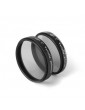 Filtro polarizzatore variabile composto da 1 filtro ND e un filtro polarizzatore, usati insieme la trasmissione della luce varia dal 1% al 40%.