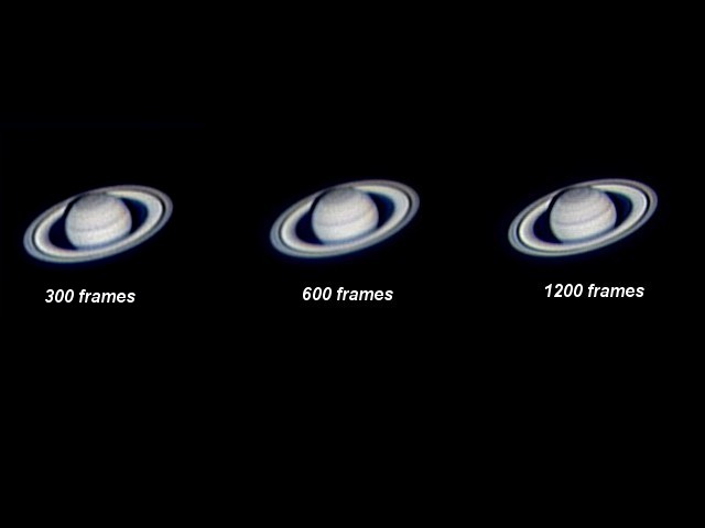 Riprese di Saturno con diversi quantitativi di Frame per foto