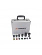 comprende una serie di accessori che aumenteranno le potenzialità del vostro telescopio. Nella dotazione sono compresi 5 oculari Plossl, 1 lente di Barlow 2x, 6 filtri colorati per osservazioni planetarie e lunari e una valigetta in alluminio che contiene l'intero kit.