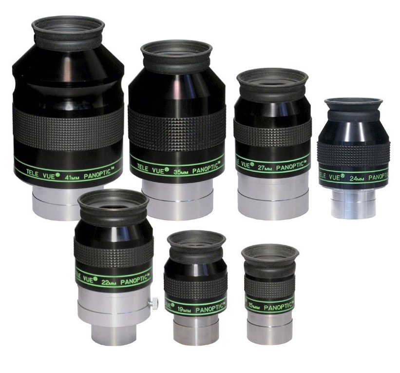 I TeleVue Panoptic sono oculari pensati appositamente per l'utilizzo con tutti i telescopi dotati di elevata luminosità, e danno il meglio con rapporti focali fino a F/4. Sono assolutamente straordinari, ad esempio, nell'utilizzo con telescopi Dobson molto luminosi, specie se abbinati al correttore di coma TeleVue Paracorr da due pollici; la grande ampiezza di campo, oltre ad offrire una visione superba di campi stellari e oggetti estesi, permette di disporre di un più lungo tempo di osservazione senza che l'oggetto esca dal campo, fattore essenziale con telescopi altazimutali non motorizzati.