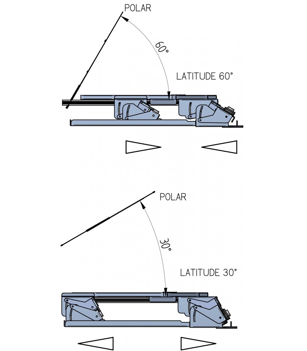 La piattaforma ha la possibilità di variare la latitudine di 2° in 2° per cui potrete portarla ai vari star party anche se con notevole variazione di latitudine sapendo che dovrete agire solo poco sul controllo di velocità dell’inseguimento, dopo aver modificato la latitudine.