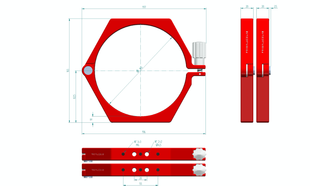Gli anelli di supporto PLUS 145mm sono parte del nostro sistema PLUS (Prima Luce Universal System) che comprende molti altri anelli di supporto, piastre, anelli di guida e morsetti per offrirvi la massima libertà nel costruire il vostro sistema meccanico di supporto, in funzione dell'applicazione che volete realizzare. Infatti tutti gli elementi PLUS presentano fori filettati, fori passanti e asole adatti per collegare gli elementi tra di loro, sempre con massima rigidità e comodità.
