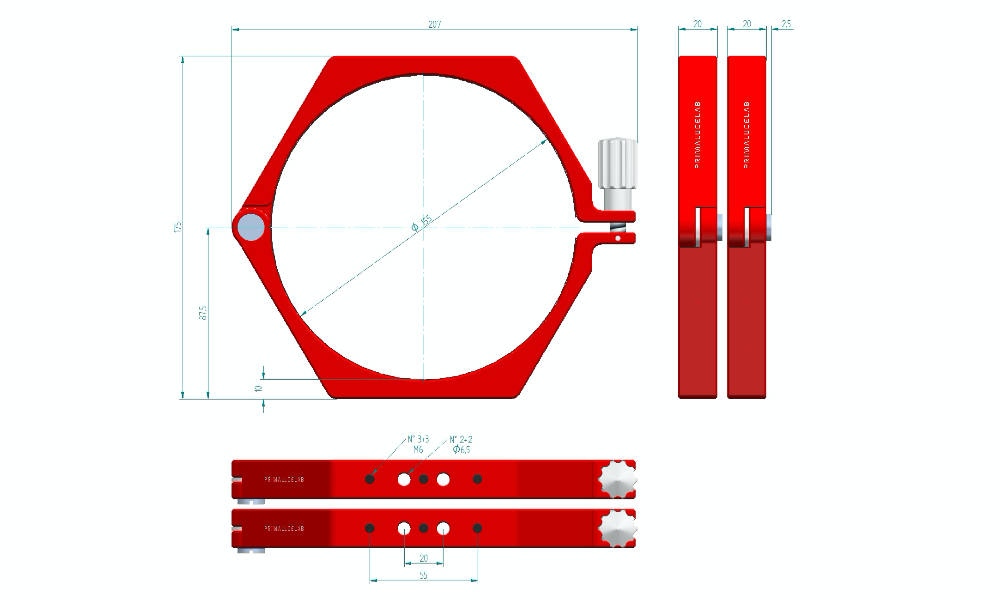 Gli anelli di supporto PLUS 155mm sono parte del nostro sistema PLUS (Prima Luce Universal System) che comprende molti altri anelli di supporto, piastre, anelli di guida e morsetti per offrirvi la massima libertà nel costruire il vostro sistema meccanico di supporto, in funzione dell'applicazione che volete realizzare. Infatti tutti gli elementi PLUS presentano fori filettati, fori passanti e asole adatti per collegare gli elementi tra di loro, sempre con massima rigidità e comodità.