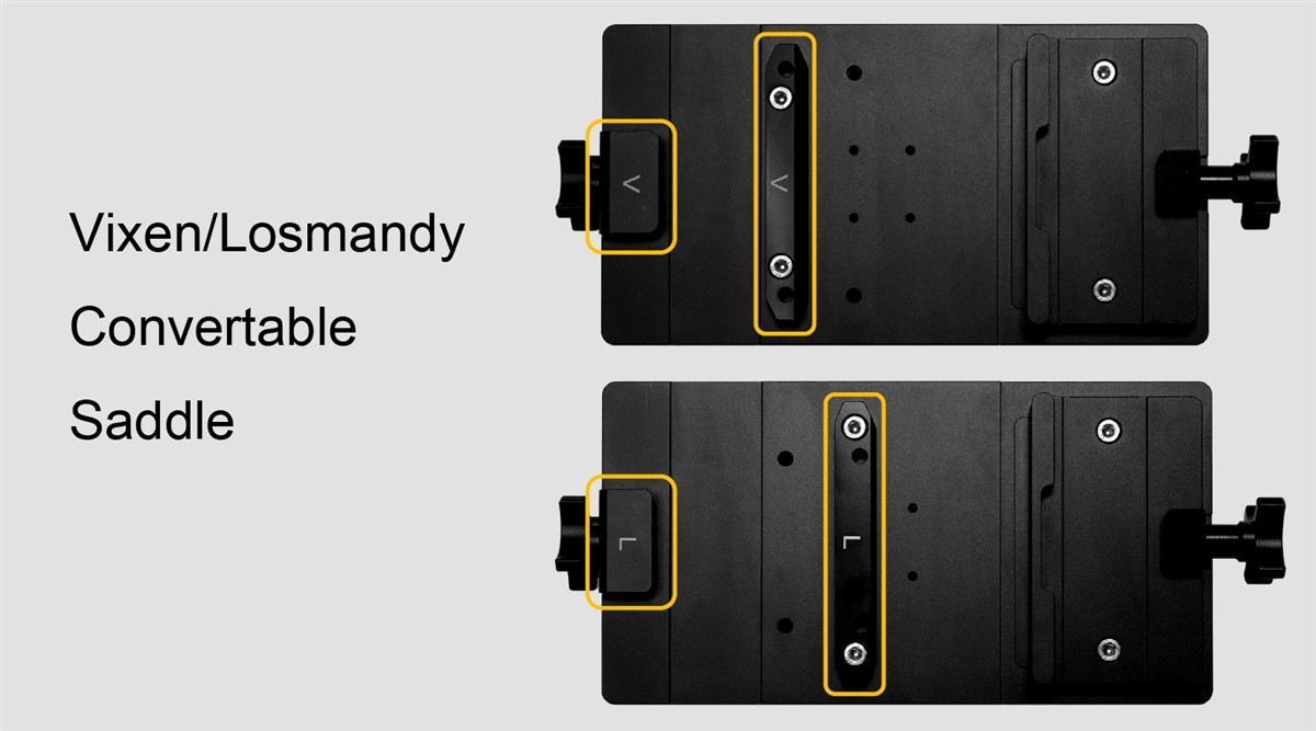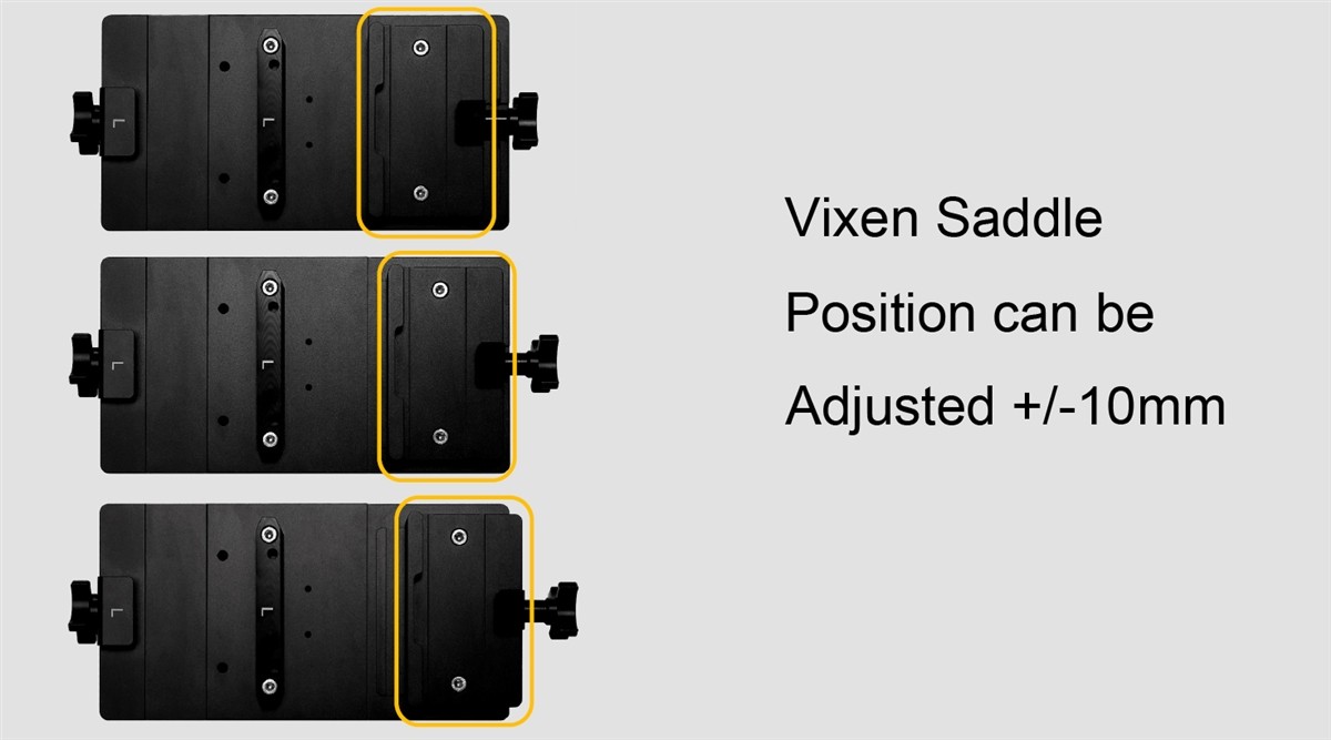 Robusta piastra doppia Vixen-Losmandy regolabile. Utilizzabile su tutte le montature con attacco losmandy ma particolarmente indicate per le iOptron che hanno la posizione zero