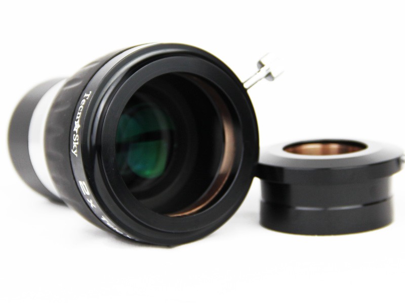 La barlow telecentrica Tecnosky 2X è composta da 4 elementi ottici trattati antiriflesso; qualità ottica molto elevata e correzione cromatica perfetta, utilizzabile con profitto in tutti i campi dalla dalla ripresa hi-res al profondo cielo e anche con i filtri solari tipo Daystar sul Sole.