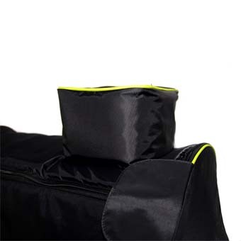 Caratteristiche: imbottitura in gommapiuma 10 mm, bilanciata, con tracolla removibile, tasca focheggiatore integrata, supporto imbottito, nastro riflettente
