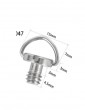 vite corta, lunghezza totale 7,5mm, parte filettata 4mm. Testa piatta con anello per avvitarla. In ferro con risvestimento al Nichel