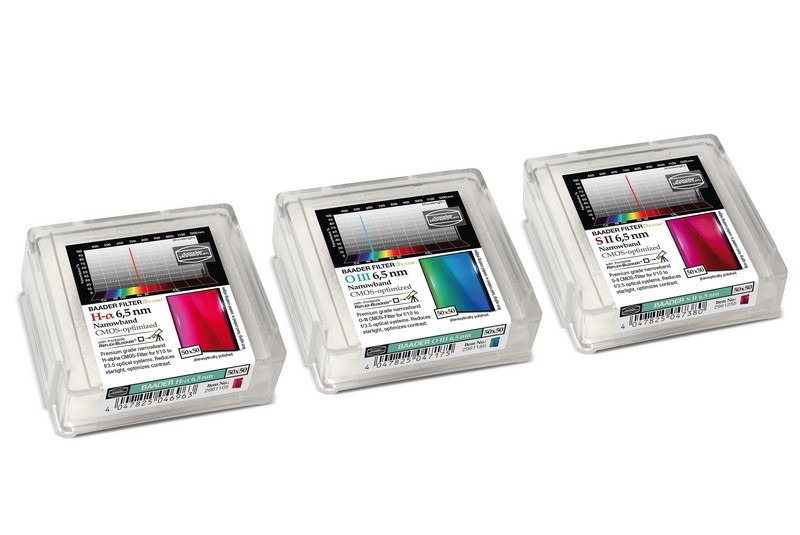 • Set di filtri a banda stretta Baader H-alpha / O-III / S-II da 50x 50mm x 3mm – Grado di precisione –