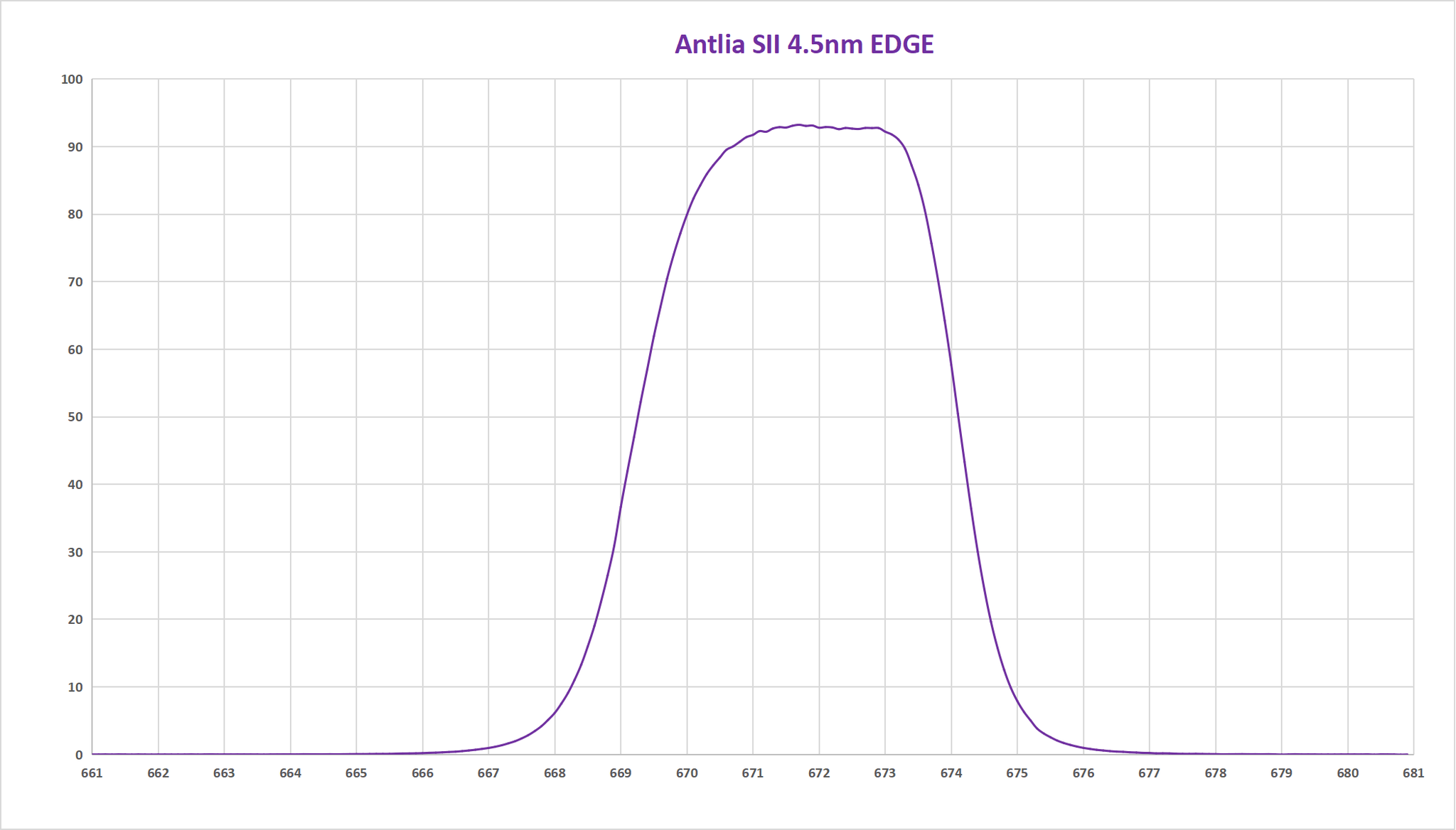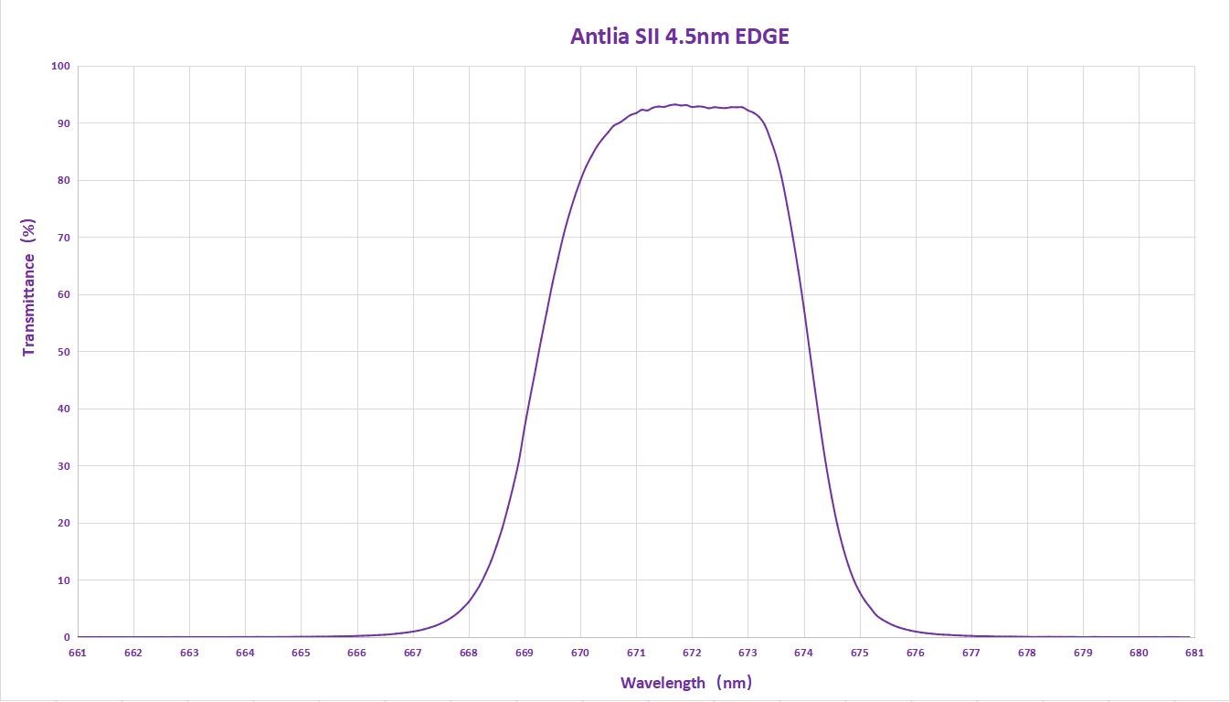 Il filtro SII da 3nm di Antlia Filters è un filtro a banda molto stretta efficace contro l'inquinamento luminoso ed è adatto per oggetti del cielo profondo come nebulose a emissione o resti di supernova per un'immagine molto ben contrastata e perfettamente centrata nella lunghezza d'onda di 671.6nm.