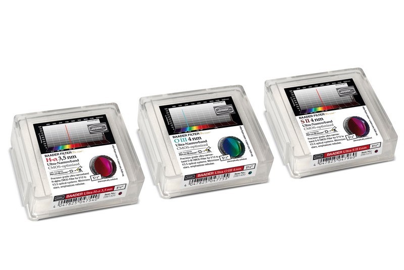 Set di filtri a banda ultra stretta Baader 3,5 / 4 nm 1 1/4 - ottimizzato CMOS (H-alpha / O-III / S-II)