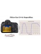 Modifica con Filtro Eos Uv-Ir SuperBlue interno per APS-C. Banda passante compresa tra 250nm e 450nm e maggiore di 700nm, verranno bloccate dal filtro le lunghezze d’onda del visibile. Con il filtro Eos Uv-Ir SuperBlue verra’ rimossa la funzione pulizia sensore a piezo-elettrico. La funzione AutoFocus rimarra’ attiva, ma non sara’ piu’ possibile effettuarefoto nellelunghezze d’onda del visibile.