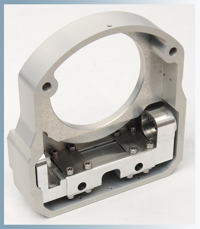 La modifica consiste in un supporto CNC anodizzato grigio ed un blocco per vite senza fine con molla precaricata (kinematic) e cuscinetti di alta qualità SKF 628