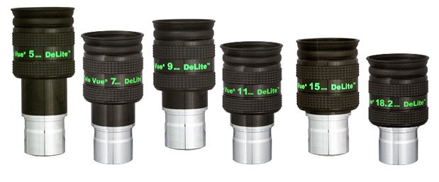 Dopo gli oculari della serie Delos, che hanno riscosso grandi apprezzamenti, il progettista Televue ha creato la serie Delite: versione meno impegnativa sia come prestazioni sia come costo rispetto alla serie precedente. I Delite hanno 10° di campo in meno rispetto ai Delos (da 72° a 62° di campo) e un peso che è circa la metà, conservando però l'estrazione pupillare di 20mm e il barillotto a scivolamento da 31,8mm. L'oculare è ottimo anche per chi porta gli occhiali senza ridurre l'intero campo visivo.