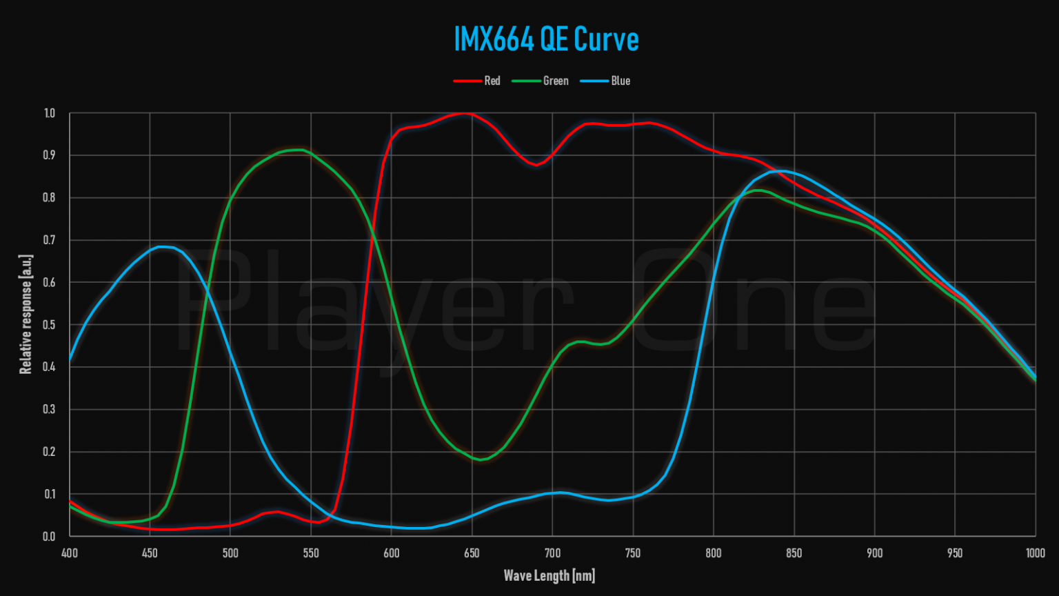 La curva QE della fotocamera Mars-C II è unica. La sensibilità raggiunge il suo picco a 600e gli 800 nm e l'RGB viene raccolto, il che ha una sensibilità agli infrarossi molto forte.