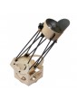 Abbiamo privilegiato una struttura in legno di faggio lamellare che lo rende stabile e leggero. In particolar modo è stato curato il cilindro superiore dove trova alloggiamento lo spider portasecondario che è stato realizzato in multistrato di betulla a fasci incrociati che conferiscono al pezzo una resistenza e indefomabilità unica. Anche la cella dello specchio primario è in legno di betulla multistrato con un sistema di appoggio a 9 punti flottanti il cui specchio appoggia su dischi di sughero naturale indeformabile.