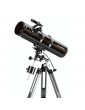 Telescopio Newton Explorer con diametro 130mm, lunghezza focale 900mm su montatura equatoriale EQ2 e treppiede alluminio regolabile in altezza, oculari diam. 31,8 Super 25mm (36X) e Super 10mm (90X), Lente di barlow 2X, cercatore 5X24 (Motorizzazione AO1000 o AO2000 opzionale).