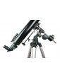 Il telescopio è dotato di una solida montatura equatoriale in alluminio con cerchi graduati e movimenti micrometrici in entrambi gli assi. Questa montatura è progettata per seguire il movimento apparente degli oggetti celesti, facilitando notevolmente l’osservazione continua di un corpo celeste senza doverlo ripuntare. Una volta allineato correttamente verso la stella polare, basterà utilizzare la manopola dell’asse di Ascensione Retta (AR) per compensare la rotazione terrestre e mantenere un oggetto nel campo visivo. Questo sistema rende il telescopio ideale sia per l’osservazione manuale che per chi intende abituarsi a tecniche di osservazione astronomica più avanzate.