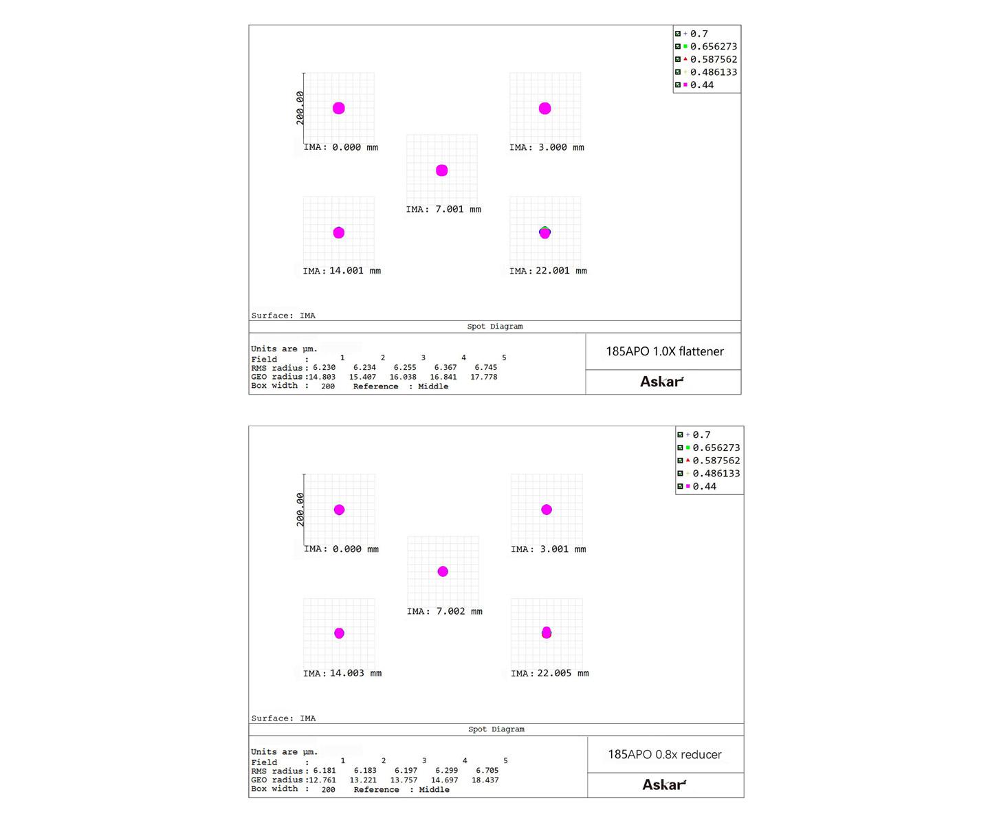 L'Askar 185APO adotta un design Apo tripletto spaziato in aria, incluso un elemento in vetro ED.