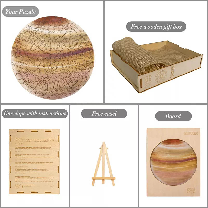 Bellissimo e divertente puzzle di legno rappresentante la Saturno