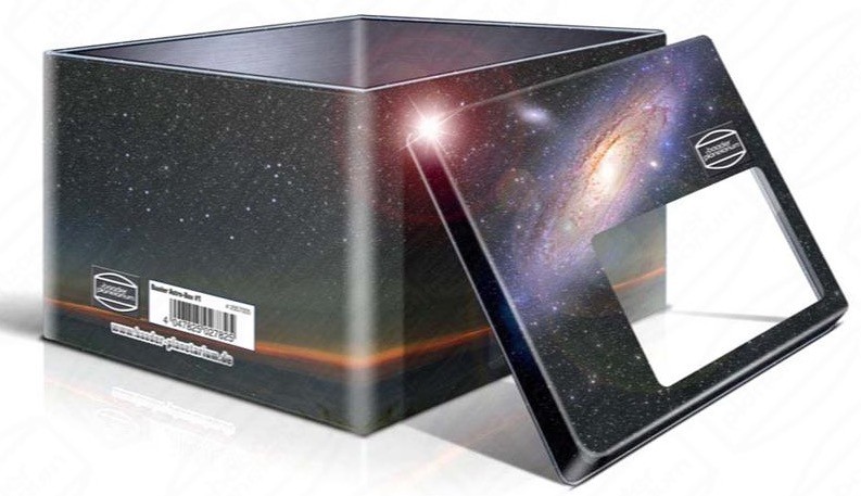 Astro-Box: Si tratta di una scatola a tema di astronomia fatta di gomma piuma imbottita. Perfetta per il trasporto e la conservazione di tutti gli oculari Classic Baader, della lente di Barlow e della torretta completa.