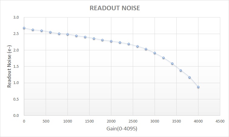 Rumore di lettura (e-): 1.0 e- in modalità alto guadagno, 2.7 e- a gain zero