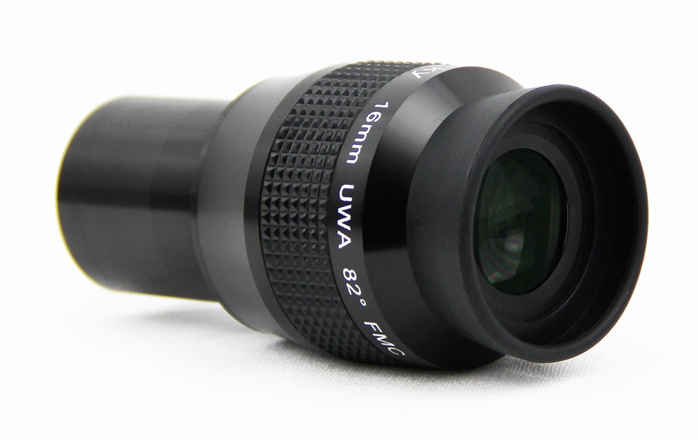 Stupendo oculare ultrawide con ben 82° di campo apparente! Grazie al complesso schema ottico a 7 elementi la visione è corretta ed incisa su tutto il campo. Trattamento anti riflesso FMC su tutte le lenti