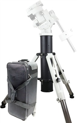 Treppiede in acciao Ioptron Tri-pier di colore bianco e nero con Rolling Case