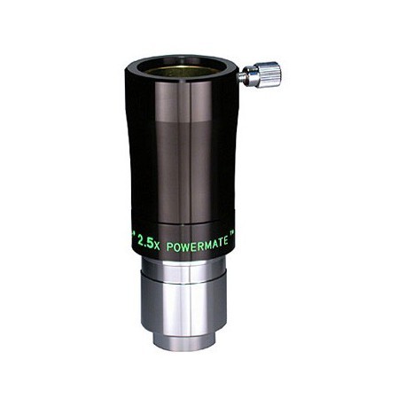 Powermate TeleVue 2.5x da 31.8 mm. La Powermate è un progetto esclusivo Tele Vue che utilizza un sistema di lenti positive e non negative come per le normali barlow. Questo permette di mantenere l'estrazione pupillare originale di ogni oculare con qualsiasi lunghezza focale. Ovviamente mantiene caratteristiche di contrasto e nitidezza ai massimi livelli. Per questo chiamarla barlow è riduttivo