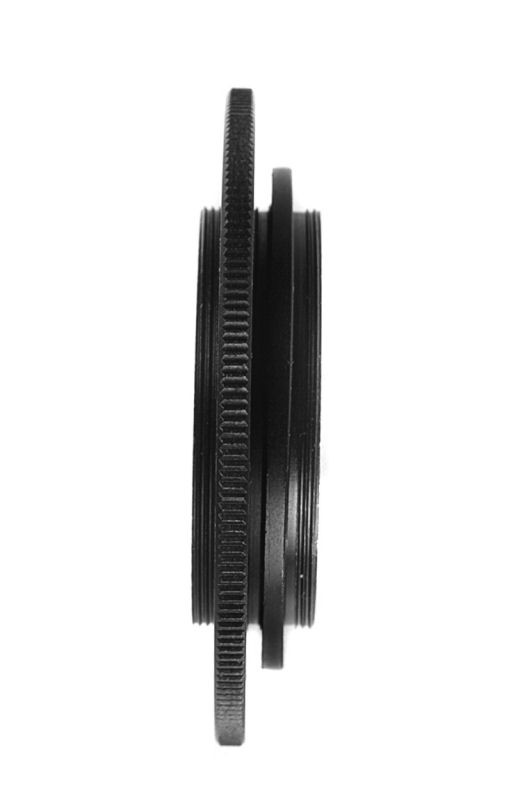 Raccordo doppio M48 maschio (48x0,75) con anello di bloccaggio. Lunghezza totale 12mm