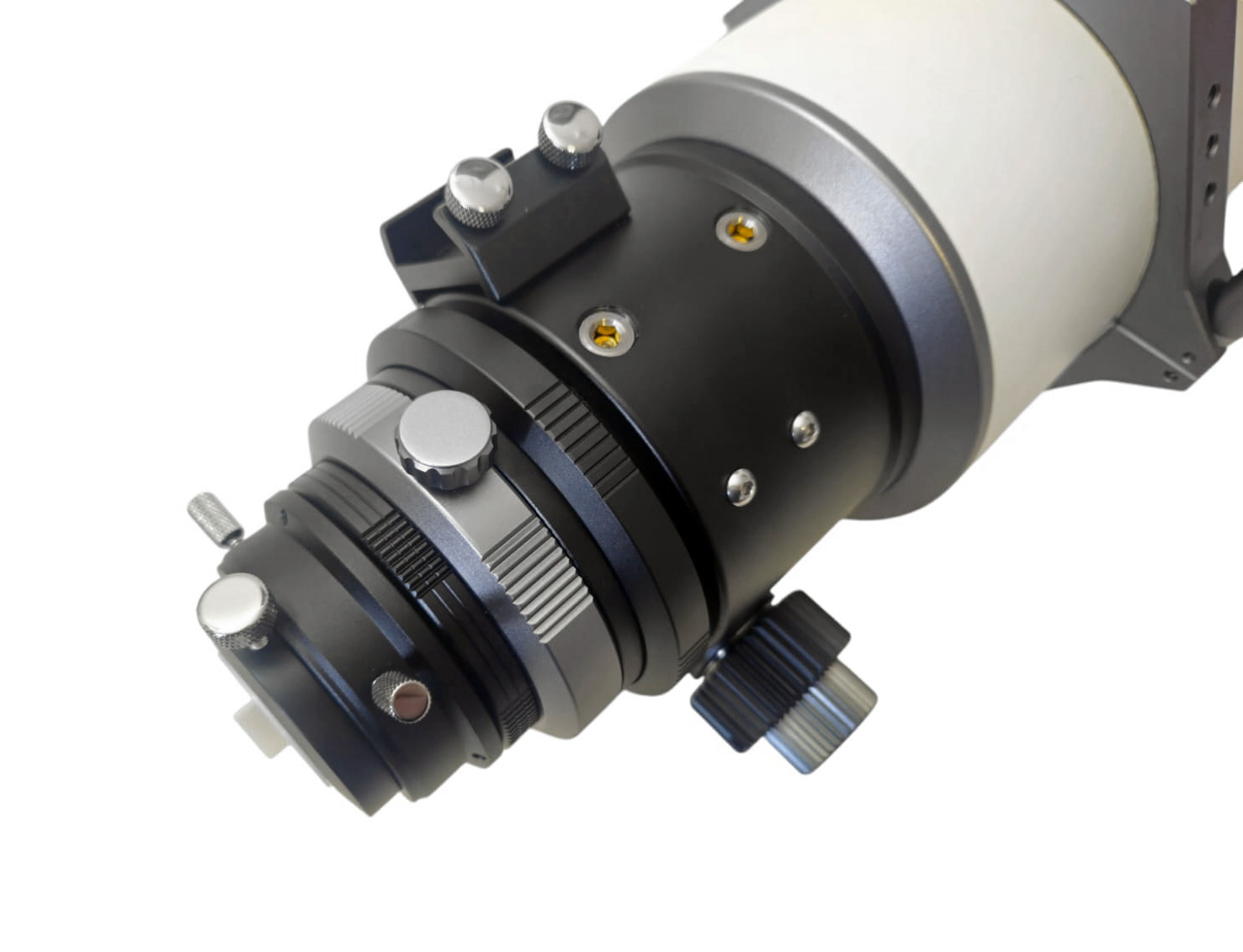 Il sistema di messa a fuoco di precisione a cremagliera da 3,2" garantisce una regolazione estremamente fine, grazie alla manopola micrometrica che permette un controllo perfetto del fuoco. Il rotatore di campo integrato a 360° consente di orientare facilmente la camera per una composizione perfetta dell’immagine, un aspetto particolarmente apprezzato in astrofotografia.