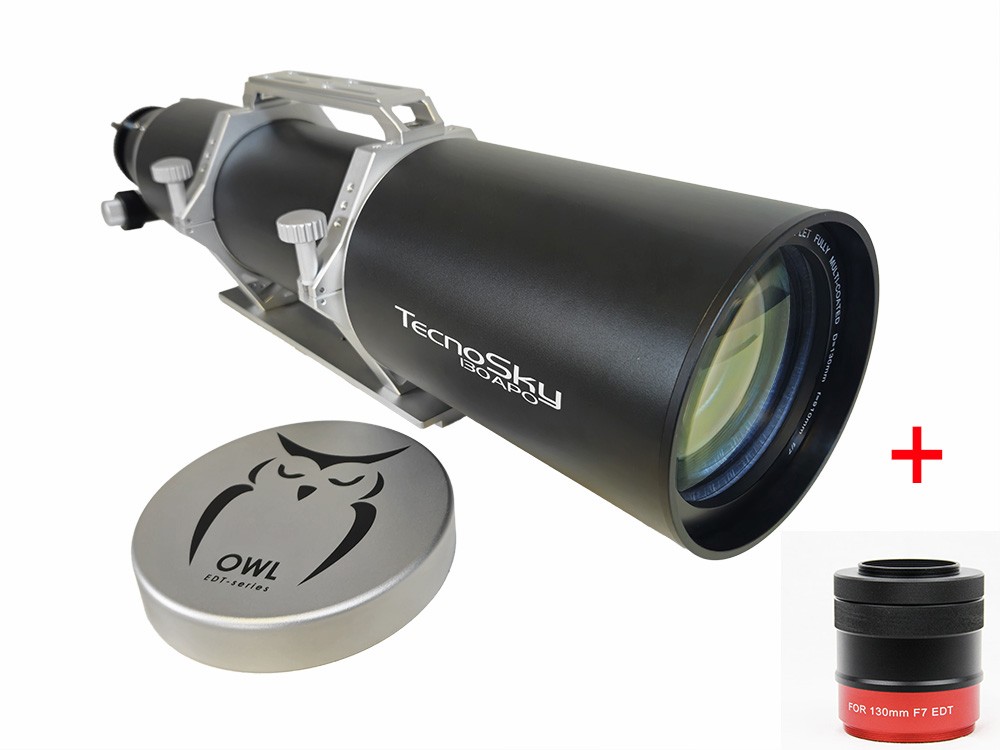 Il nuovo Tecnosky 130/900mm OWL EDT è un tripletto trattato FMC con elemento centrale alla fluorite FPL-51, grazie allo schema ottico a 3 elementi è da considerarsi un apocromatico a tutti gli effetti